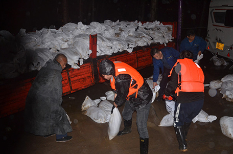 公司裝運沙袋 助力防洪工作