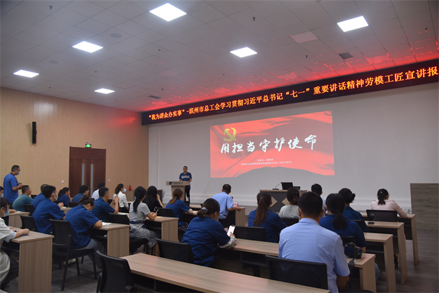 導(dǎo)讀:由濱州市總工會(huì)主辦的“我為群眾辦實(shí)事”學(xué)習(xí)宣傳貫徹習(xí)近平總書記“七一”重要講話精神勞模(工匠)宣講報(bào)告會(huì)首次宣講,在公司會(huì)議中心舉辦。