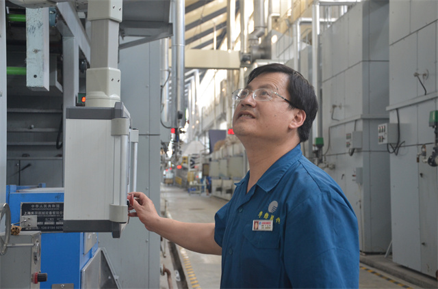 面料車間4號(hào)打底機(jī)的紀(jì)建峰,進(jìn)入公司已10年有余,從事過(guò)多個(gè)機(jī)臺(tái)的操作工種。