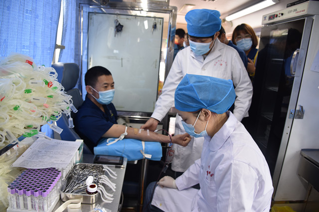 獻血隊伍中,既有工作多年的老同志,也有剛剛參加工作的新員工。獻血車就位后,員工在濱州市中心血站工作人員的指導下,認真填寫獻血登記表、測量血壓、抽血化驗,經血液檢驗合格后開始獻血。“我參加無償獻血的初衷,就是想盡自己的一點力量。”在場參與獻血的一名員工說到。簡單的一句話,展現的卻是充滿溫暖情感的無私之愛。