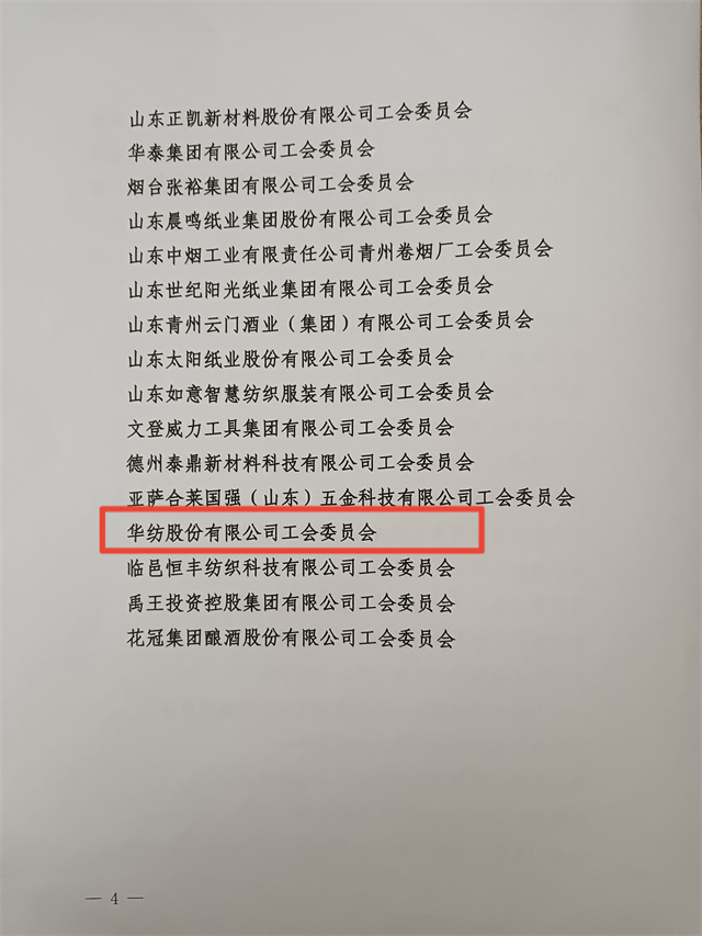 近日,省輕工紡織工會三屆四次全委會暨全省輕紡系統(tǒng)產(chǎn)業(yè)工人隊伍建設改革推進會議在濟南召開。會上公布了全省輕紡系統(tǒng)產(chǎn)業(yè)工人隊伍建設改革先進單位名單,公司工會委員會名列其中。