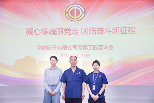 勞模就在身邊,讓我們以勞模工匠為榜樣,以宣講會為動力,從我做起,從現(xiàn)在做起,比學趕超。學習模范、尊重模范、爭做模范,為公司高質(zhì)量發(fā)展和“百年華紡”的愿景努力奮斗!