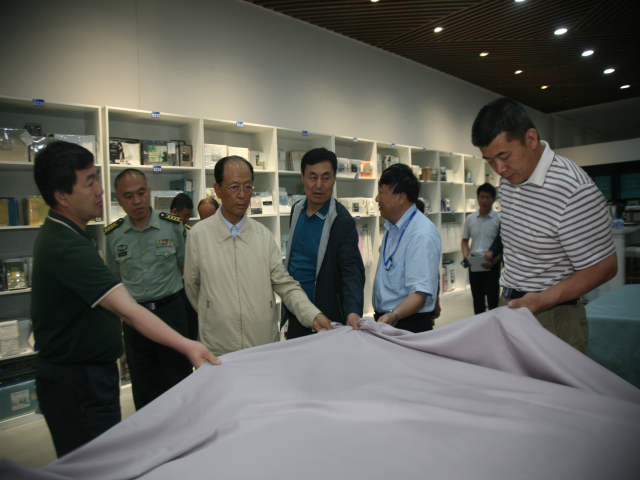 市人大常委會(huì)副主任呂德章,市政協(xié)副主席吳國(guó)瑞、趙建明,濱州軍分區(qū)參謀長(zhǎng)許增全,公司黨委書(shū)記、董事長(zhǎng)王力民,副總經(jīng)理孫中然等,陪同張文臺(tái)上將一行參觀了家紡展廳等處所。