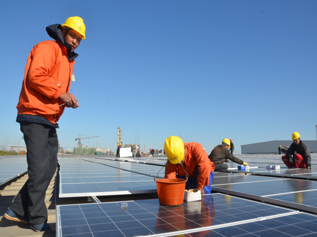 導(dǎo)讀:10月29日,一些工人正在公司工業(yè)園紡紗車間5萬多平方米的廠房房頂上,將一塊塊用于一期6MW光伏發(fā)電項(xiàng)目的光伏組件陸續(xù)安裝到位。