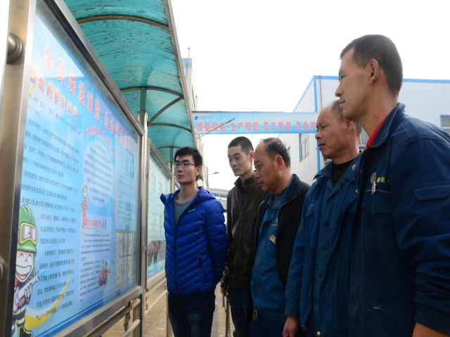 圖為員工在消防安全宣傳專(zhuān)欄前了解消防知識(shí)的情形。