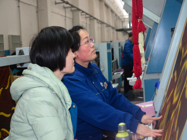 車間來了新學員,往往優先分配給袁麗霞做徒弟,不僅因為她經驗豐富,更是因為她對工作認真負責的態度。像袁麗霞一樣,花二整裝車間有21名經驗豐富的驗布工,正是由于他們的努力,為花二整裝車間提質增效提供了保障。